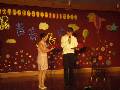 Jako że każda akcja pociąga za sobą reakcję (czyż nie tak, Dom?), szkoła jest w trakcie reakcji. Za trzecie miejsce na konkursie recytatorskim żadnych gratulacji, braw ani uśmiechów, ale za to we czwartek, przebrana za bezę, będę wraz z innymi Pięknymi Białasami prowadzić konferansjerkę na szkolnej uroczystości. Prowadzić... to znaczy dukać to, co wcześniej napisali chińscy studenci i miło się uśmiechać, starając się powstrzymać prychanie... Jak do tego doszło? W piątek Panda przyszedł i zapytał, czy chce. Powiedziałam, że nie chcę. Że mogę śpiewać, tańczyć, recytować,... i gotować, ale konferansjerka to nie mój żywioł. Panda przyswoił, więc sądziłam, że po kłopocie.