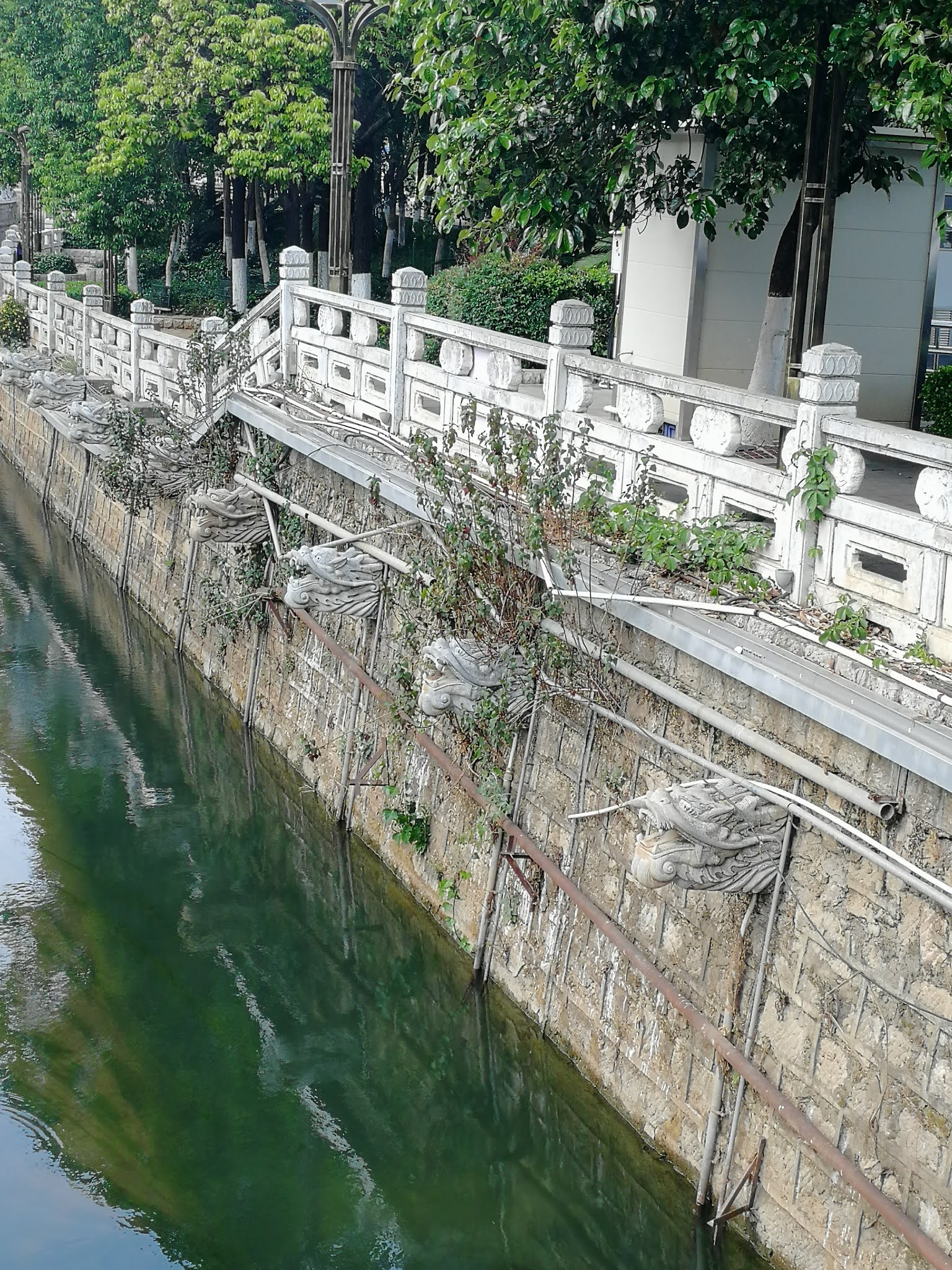 螭首 chīshǒu to dosłownie "głowa chi". Czymże jednak jest chi? Jest to otóż pozbawiony rogów smok, przez niektóre źródła zaliczany do dziewięciu smoczych synów, z których znamy również bixi, chiwen i suanni (a o innych sobie jeszcze opowiemy). Po cóż nam jednak akurat głowa smoczego syna? Wyjaśniłam już w tytule - został ukochanym chińskim gargulcem; początkowo pluł wodą tylko w rezydencjach cesarskich, ale z czasem zaczął się pojawiać również w niecesarskich miejscach, za to koniecznie związanych z wodą - zwłaszcza przy mostach, tamach czy kanałach. Dlaczego właśnie on? Wieść gminna niesie, że wyróżniał go duży pysk i wielgachny brzuch, mieszczący niepomierne ilości wody. Ale - brzuchy chishou są pewnie schowane w murach...